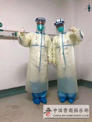 “三人小组的两位上海支援队小姐姐。几轮班上下来,我们竟有了相见恨晚的默契。分工协作,相互体谅。战地玫瑰,不论地域,在哪里都能分外芳香。”
