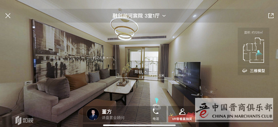 进入贝壳VR售楼部的样板间,系统将自动呼叫职业经纪人进入房间,并可预约置业顾问共同带看。如线下看盘一样,每进入一个空间置业顾问就会对其装修和尺寸等信息进行介绍,并可随时切换不同面积的样板间供购房者挑选。而对于朝向、采光等具体问题的咨询,该名置业顾问立即给予了详细的解答。