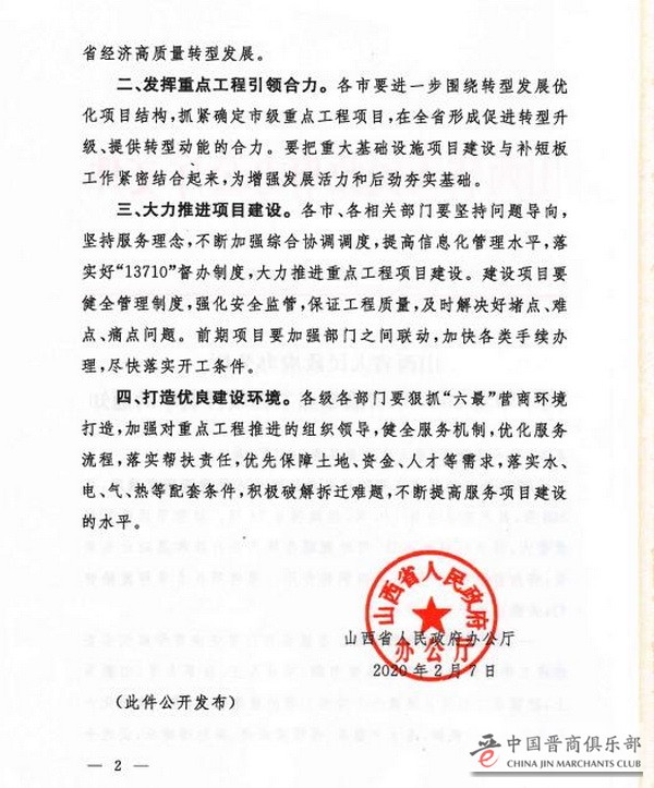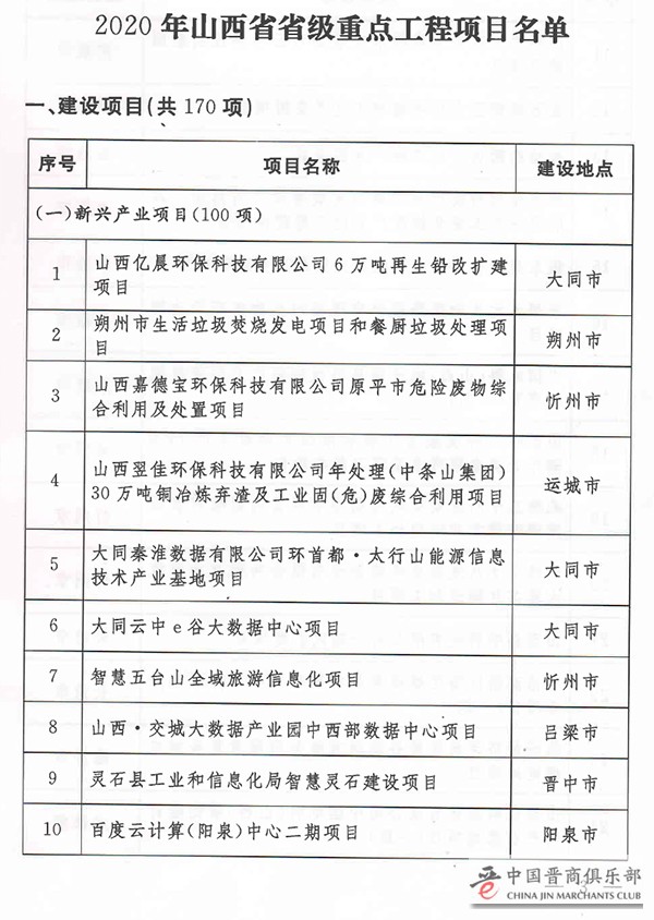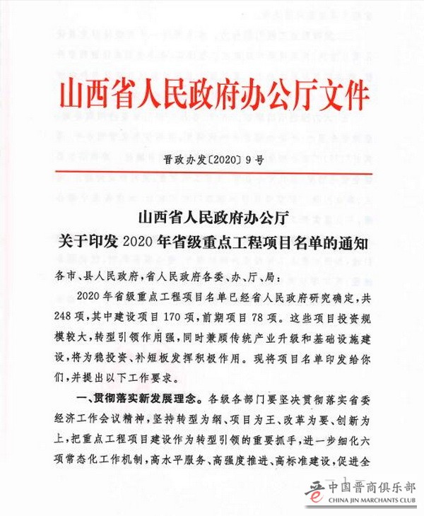 2月24日,山西省发改委印发2020年省级重点工程项目名单通知。