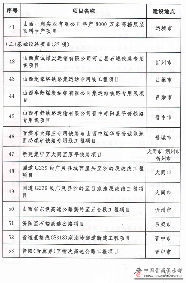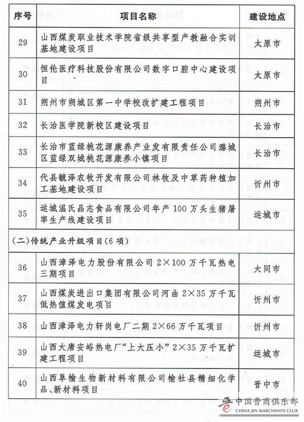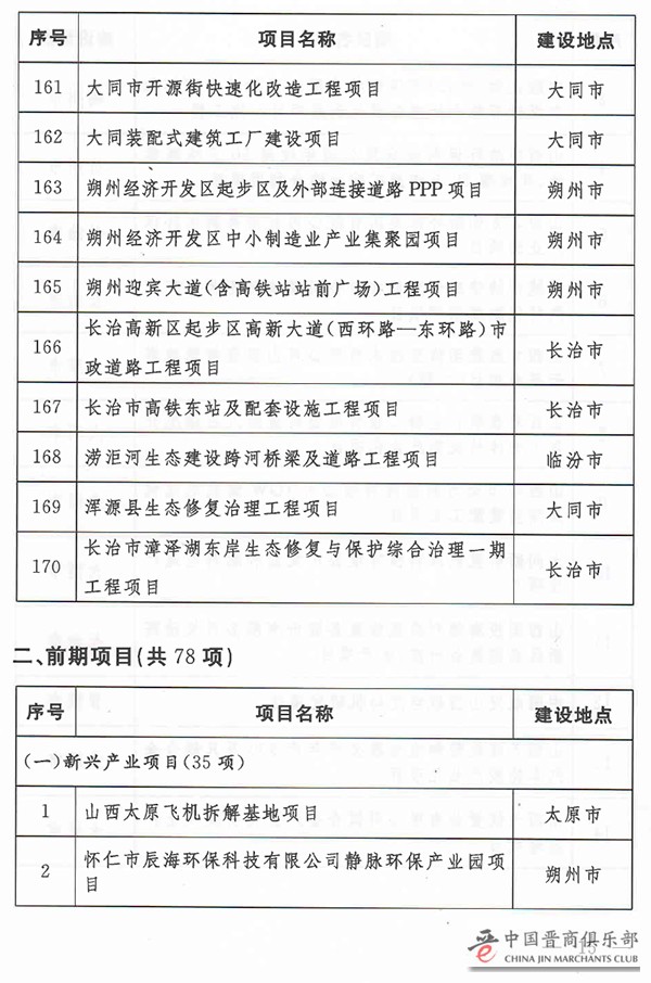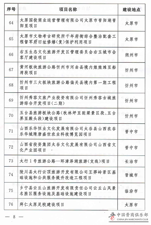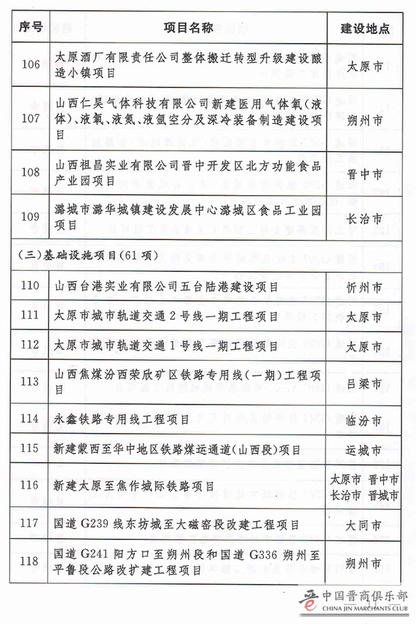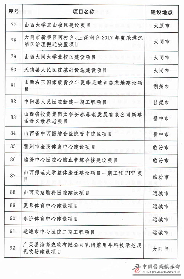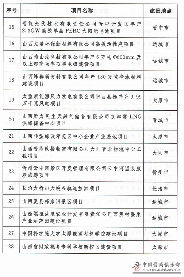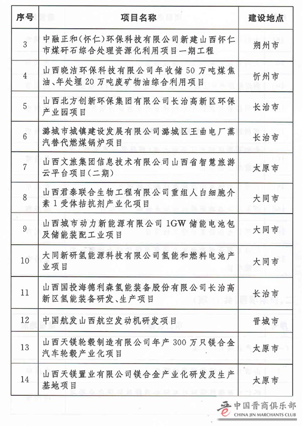 中国晋商俱乐部秘书处为您整理项目清单如下: