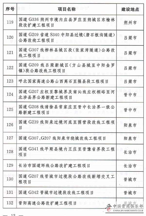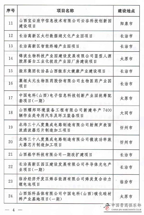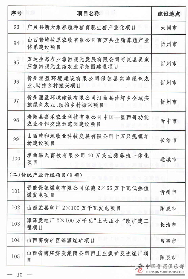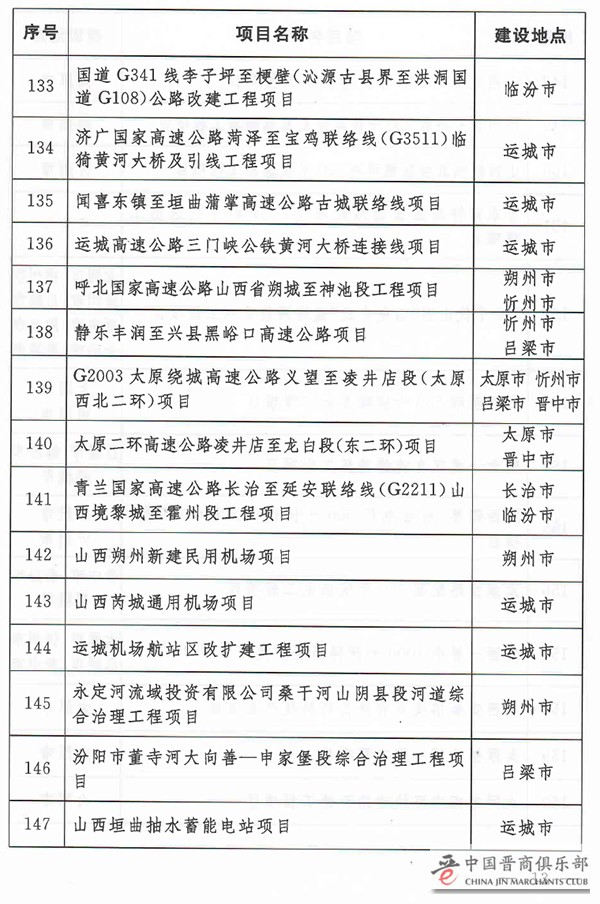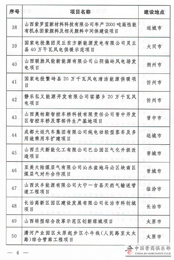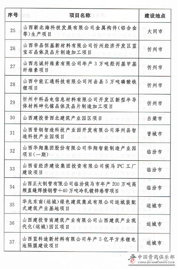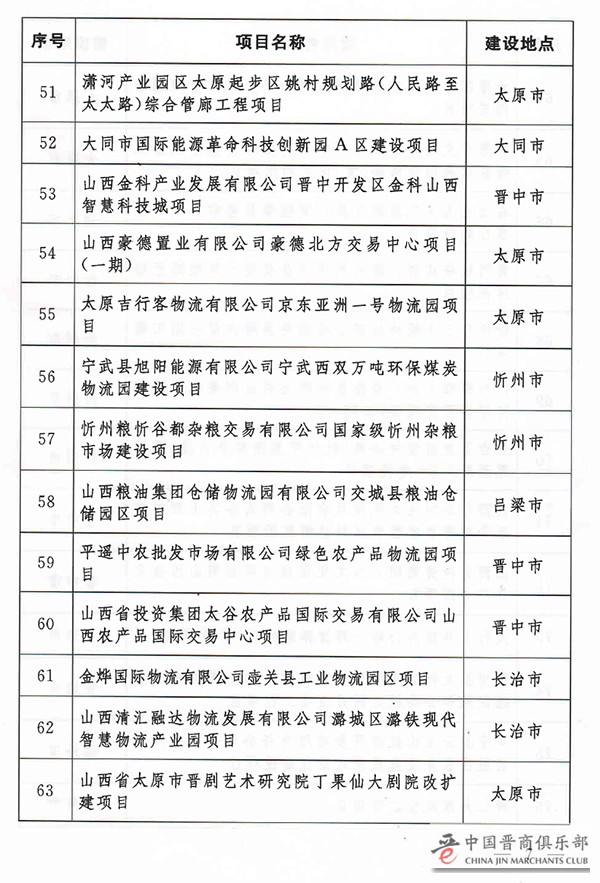 中国晋商俱乐部秘书处为您整理项目清单如下: