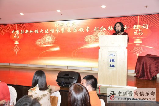 中国驻新加坡大使馆刘红梅参赞兼总领事、新加坡原政务部长曾士生分别作为受邀嘉宾做了致辞,祝贺新加坡晋商商会。
