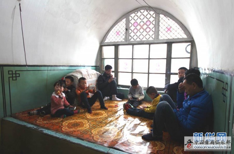 互联网的普及对乡村的影响也逐渐显现。以前全家团聚多围坐在炕上拉家常,如今,年轻人回家就玩起手机。图为东水界村郝家几个儿子回家,全家老小正忙着低头抢红包(2月12日摄)