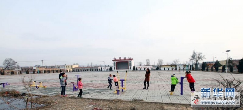 向阳堡村中央小广场,几个孩子正在广场玩耍。中央小广场是村子里举办庙会的地方,也是村子的“文化中心”(2月10日摄)