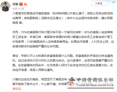 不过,交银国际洪灏却认为,考虑到美国的贫富差距,以及美国人的超前消费观,特朗普的措施显示美国没有准备好病毒疫情的全面爆发,以及川普可能除了股市之外,什么都不懂。市场看清了形势,先跌为敬。