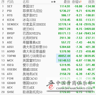 欧股同样暴跌,盘初包括欧洲斯托克50、德国DAX、法国CAC40、英国富时100等在内的重要股指跌幅均超5%。至截稿,不少国家股指跌幅仍超5%,俄罗斯RTS更是跌超10%。