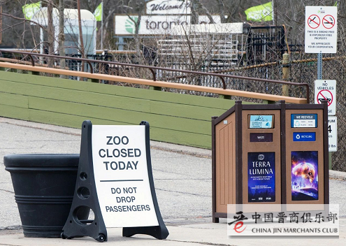 3月14日,加拿大多伦多动物园摆放了闭园的提示牌。新华社发(邹峥 摄)