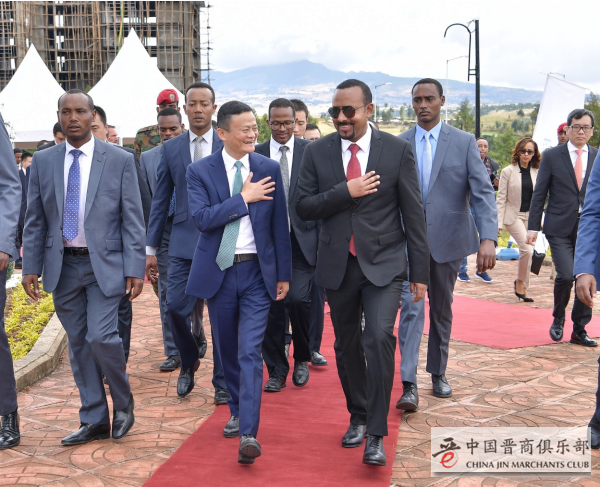 (2019年11月,亚的斯亚贝巴,马云(左)与埃塞俄比亚总理阿比(右))