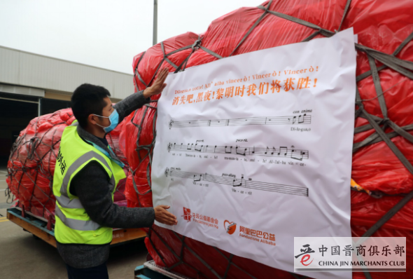 (马云捐意大利物资包装上用《图兰朵》谱曲寄语“黎明时我们将获胜!”)