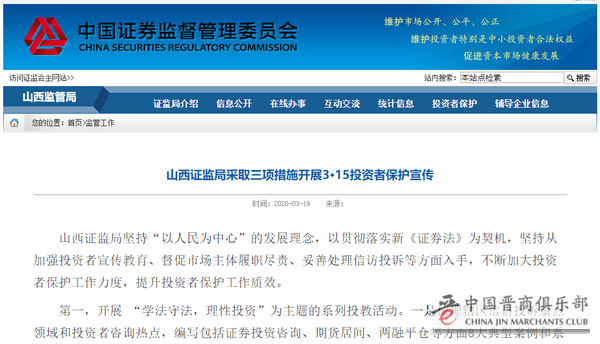 山西证监局主要采取三项措施,开展315投资者保护宣传。