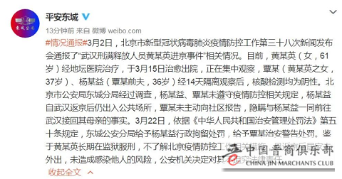 3月2日,北京市新型冠状病毒肺炎疫情防控工作第三十八次新闻发布会通报了“武汉刑满释放人员黄某英进京事件”相关情况。