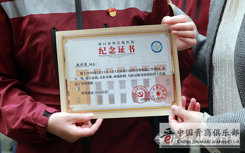 3月22日,山西省国家紧急医学救援队驻地,武汉市硚口区区长刘丹平一行看望我省医护人员。每位队员都收到一份特殊的礼物——硚口武体方舱医院纪念证书,铭记大家在硚口方舱逆行奋战的日子。