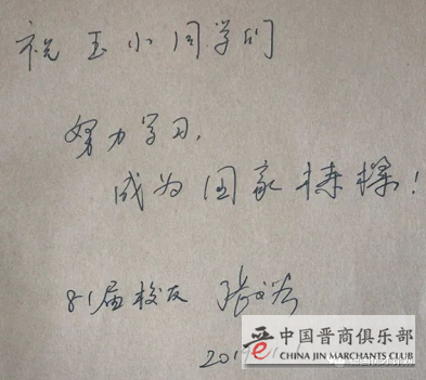 2019年1月1日,张文宏回母校留下赠言勉励玉海小学同学