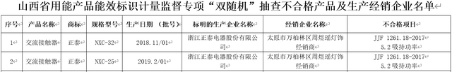 其中,浙江正泰电器股份有限公司(简称“正泰电器”,601877.SH)生产的2个型号的交流接触器不合格。规格型号分别为NXC-32、NXC-25,经销企业均为太原市万柏林区周煜瑶灯饰经销商,不合格项目为JJF 1261.18-2017 5.2吸持功率。