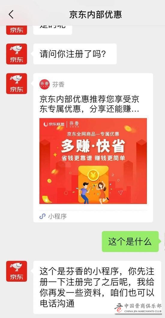 老季正试图将我发展为他的下线。他号称是京东芬香合伙人。在加上微信好友的下一秒,他向我发来一个“京东专属优惠”的注册链接。