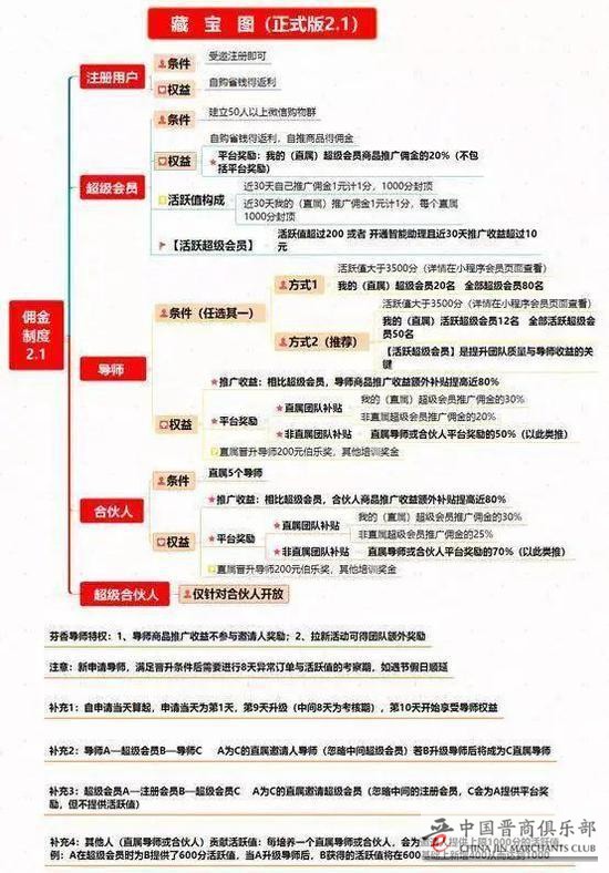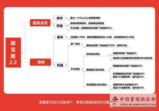 根据老季的介绍,芬香的用户分为四个等级,分别是注册会员、超级会员、导师、合伙人。注册会员只能自买省钱;超级会员可以分享赚钱,提成比例是下级销售收入的20%;导师可以拿整个团队往下裂变的人销售额的20%,且推广佣金比超级会员高80%;合伙人可以拿整个团队裂变超级会员的25%,拿直属导师推荐收益的70%。另外还有一个超级合伙人,但仅针对合伙人开放。