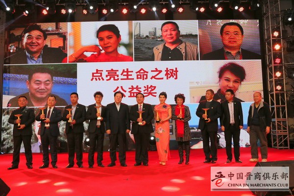 晚会现场,陕西省晋商商会表彰了2015年在公益慈善事业和服务商会方面做出贡献的晋商会员,为他们颁发了“点亮生命之树”公益奖和商会服务贡献奖。