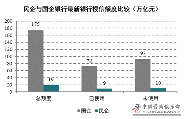 人民币贷款是我国社会实体进行融资的主要方式,在社会融资中占比基本稳定在60%,而债券融资的占比仅有10%。因此,作为我国社会融资的中流砥柱,银行授信在民企与国企在之间高达156万亿元的差异更深刻反映出我国民企融资的艰难窘境。