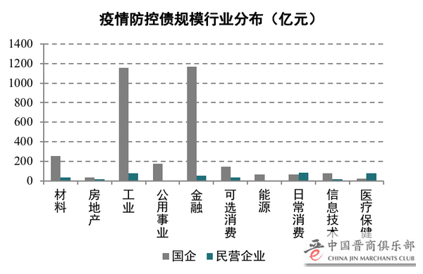 3、疫情防控债的民企、国企及行业分布