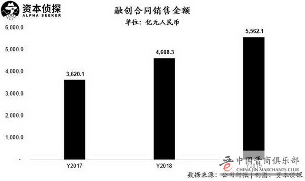 在融创对外发布的2017年业绩中,融创合同销售金额约为人民币3620.1亿元,行业排名跃升至第四名。之后的2018、2019年,融创也稳住了自己的江湖地位。