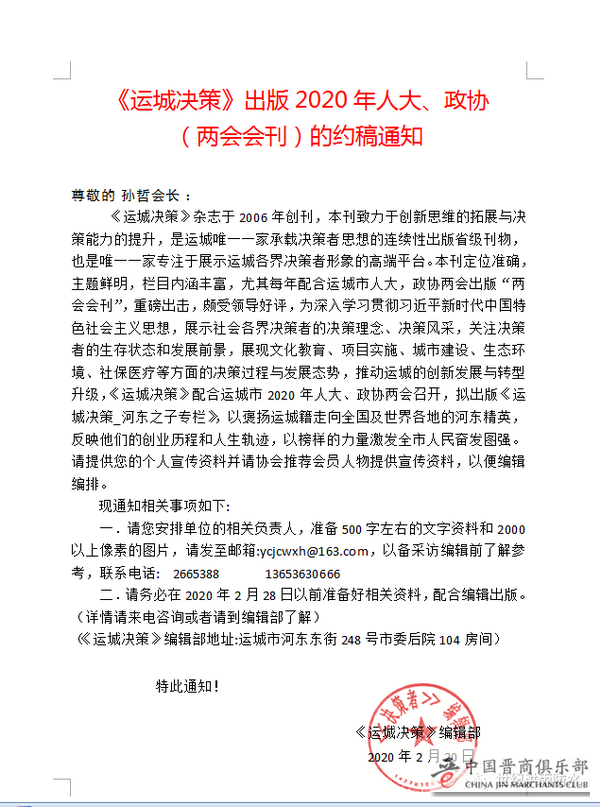 热烈祝贺孙哲董事长荣登《运城决策》两会专刊!