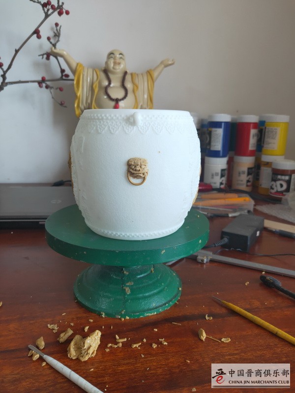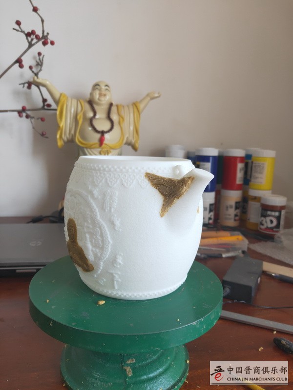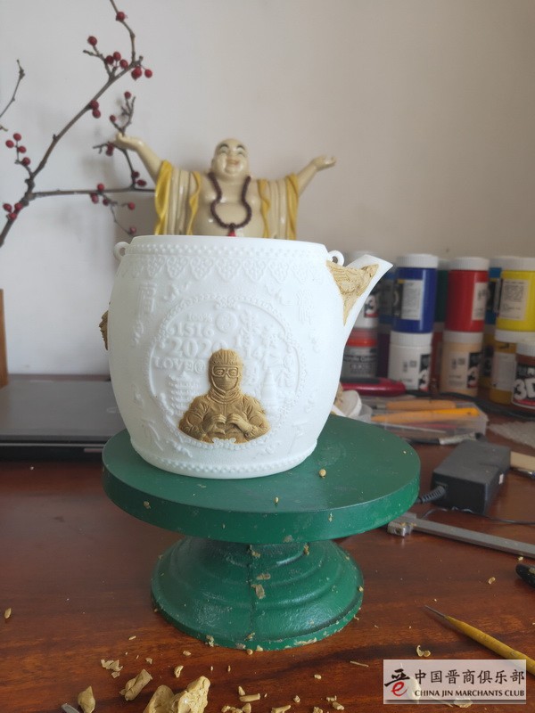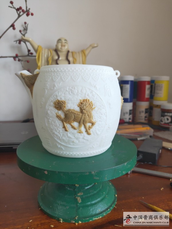 由中国晋商俱乐部出品,非遗传承人晋韵堂打造,中美日三国40多个城市的93位晋商及商友共同众筹的“抗疫纪念铁壶【竭晋全力】”已经正式制作模具,并且已经进入了手工泥膜阶段。