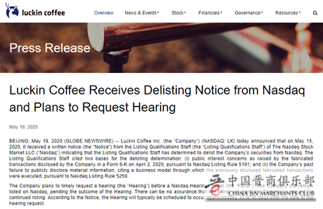 昨夜,瑞幸咖啡被纳斯达克交易所宣布强制退市,闹得沸沸扬扬。5月19日晚,瑞幸咖啡公告称,于5月15日收到了纳斯达克上市资格审查部门的书面通知,决定对瑞幸施行摘牌。