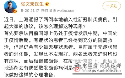 近日,上海通报了两例本地输入性新冠肺炎病例。20日晚间,上海新冠肺炎医疗救治组组长、复旦大学附属华山医院感染科主任张文宏发布微博称,两名患者来沪时均没有症状,而后相继被确诊。在疫情新常态下,此后各地逐渐会有偶然散发确诊病例是大概率事件,大家应该做好这样的心理准备。