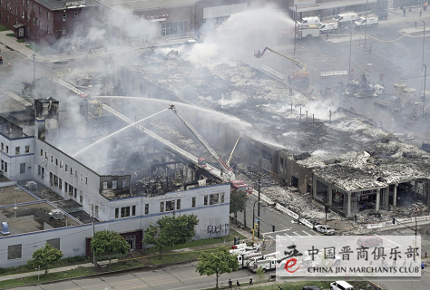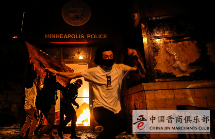 明尼阿波利斯市一警察局被抗议者破坏纵火