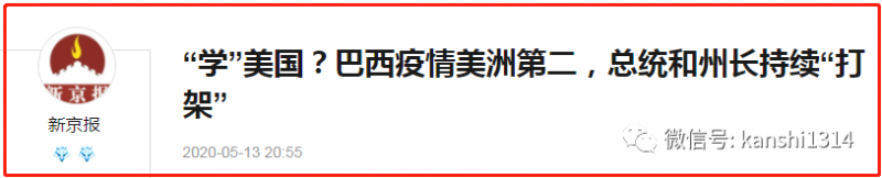 如果按照美国官方的数据(最保守数据),美国因新冠病毒而死去的人,已经超过10万,要知道过去十八年美国发动的阿富汗和伊拉克战争,美军死亡人数还不到8千。更重要的是,由于效仿美国,百分之百学习美国的巴西,目前日新增病例超过2万,累计病例已经仅次于美国,成为全球第二。