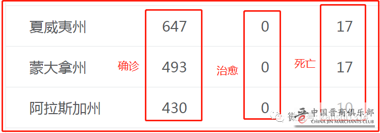 那阿拉斯加的数据,是不是一个偶然呢,其实并非如此,美国的另一块飞地夏威夷,人口121万,确诊人数超过了600;人口只有90万的蒙大拿州,确诊人数接近500。而且这三个州,至今没有治愈病例。