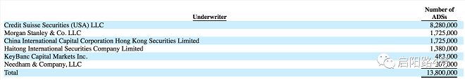 图注:瑞幸承销商一览,其中瑞士信贷报销了828万股存托凭证