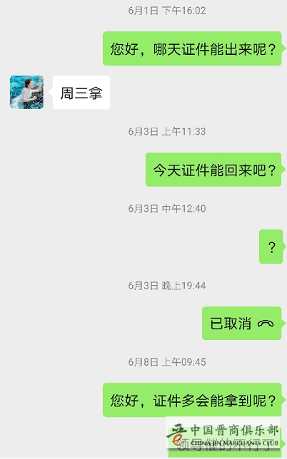 据中国晋商俱乐部接到某单位爆料,其公司委托山西天福瑞企业管理咨询有限公司代办相关文件,山西天福瑞企业管理咨询有限公司疑似恶意拖延证件办理时间,逾期无果后强行退款并耍威风。