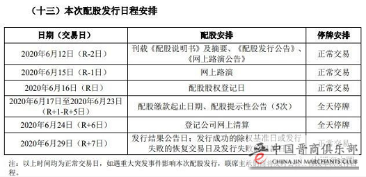 从配股实施安排来看,6月16日为股权登记日,6月17日至6月23日为配股缴款期,缴款期山西证券股票将全天停牌;6月24日为登记公司清算期,股票继续停牌一天;6月29日,山西证券将公告配股结果同时股票开市起复牌。