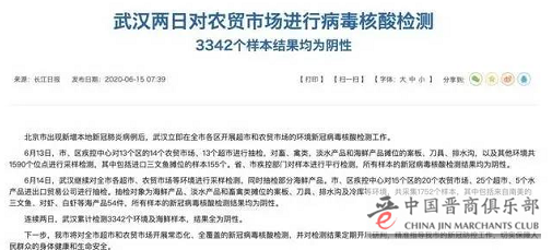 据武汉卫健委消息,北京市出现新增本地新冠肺炎病例后,武汉立即在全市各区开展超市和农贸市场的环境新冠病毒核酸检测工作,其中包括进口三文鱼摊位。连续两日,武汉累计检测3342个环境及海鲜样本,结果全为阴性。