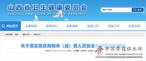 根据《关于做好离京人员新冠肺炎健康管理服务工作的通知》(联防联控机制综发〔2020〕198号)要求和兄弟省市对离鄂人员的共同做法,现就落实离京离鄂来(返)晋人员安全有序流动通知如下: