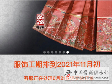像明华堂这样的高端定制品牌,由于大多为手工缝制,已经把定制工期排到了2021年11月。
