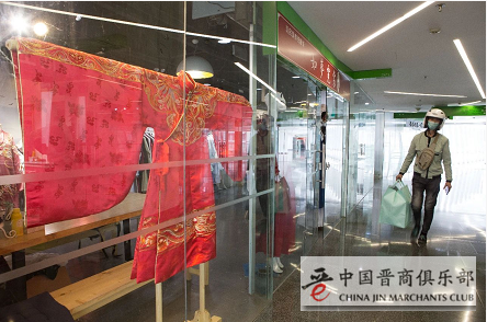 门口的展品,采用元代沿袭下来的织金技术,工艺繁琐,3888元的定价,也是店里最贵的一套。