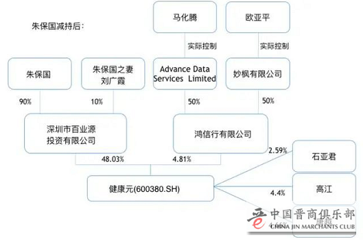 余音绕梁的2015年愚人节(4月1日),健康元公司接到第二大股东鸿信行通知,将以协议转让方式减持股份,以13元/股的价格转给石亚君、高江、唐越,三人未来将分别持有健康元2.59%、4.40%、4.66%的股份;同时,将鸿信行的剩余权益,平均转让给欧亚平实控的妙枫有限公司,以及马化腾实控的Advance Data Services Limited。换了新股东的鸿信行,持有健康元4.81%的股份,这意味着妙枫和Advance Data Services各持健康元2.405%股份