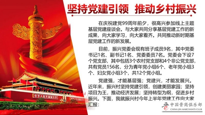 这次活动采用网络视频会议的形式,创新了新形势下村庄交流的方式,开启了不同地域、不同类型、不同发展阶段村庄网络交流的新模式,内容丰富,形式新颖,随后各村通过PPT、音频、短视频及实际场景走访等形式就基层党建做分享与交流,传播各自的好经验好做法。
