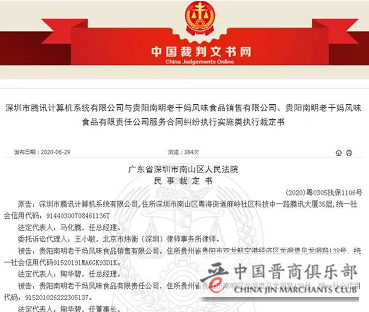 腾讯回应请求查封老干妈财产:老干妈拖欠广告费未支付