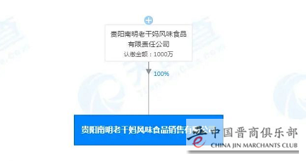 天眼查提供信息显示,贵阳南明老干妈风味食品有限责任公司持有贵阳南明老干妈风味食品销售有限公司100%股权。贵阳南明老干妈风味食品有限责任公司官网显示,“老干妈”是公司创始人陶华碧女士白手起家创造的品牌,1996年,陶华碧董事长在贵阳龙洞堡创办工厂生产风味豆豉产品,通过近20年的发展,“老干妈”已经成为海内外华人中脍炙人口的辣椒调味品品牌。