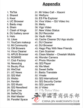 看了一下清单,好家伙,其中,包括抖音、微信、微博,也包括QQ、美图、王者荣耀……