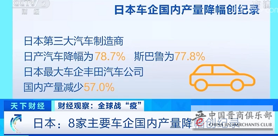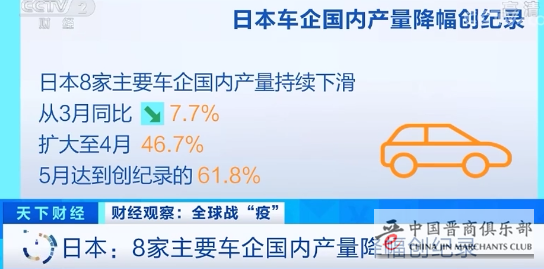 受新冠疫情影响,日本工厂相继停工或调整生产。共同社报道,日本8家主要车企的国内产量持续下滑,从3月的同比减少7.7%,扩大至4月的46.7%,5月达到创纪录的61.8%。