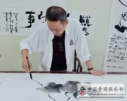 商会顾问金阳先生兴致盎然,挥笔泼墨,一张张洋溢着中华文化气息的书画作品,顷刻间呈现在大家眼前。