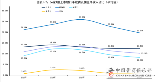 安永的报告显示,2019年,上市银行手续费及佣金净收入合计高达9347.5亿元,同比增长9.66%,是银行各个业务条线中表现最好的板块之一。例如,建设银行去年实现手续费及佣金净收入1372.84亿元,较上年增长11.58%,对营业收入比率上升0.79个百分点至19.46%;邮储银行、兴业银行、光大银行的增速也超过15%。中小银行的表现更为亮眼,宁波银行、成都银行、青岛农商行2019年的手续费及佣金净收入增速在30%-40%之间;苏州农商行同比大增77.65%至1.28亿元。