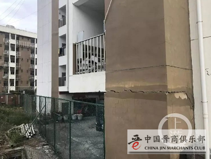 “独山大学城”校舍底部有明显裂缝,质量堪忧。/新华社