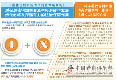 省人大财经委副主任委员李渊介绍,省人大常委会将全面依法治国新理念新思想新战略融入立法工作的各个方面,打出一套“1+X”转型综改立法组合拳。“1”就是这部创新驱动高质量发展条例,是山西转型综改立法的统领。“X”是系统制定一系列转型综改方面的地方性法规,包括开发区条例、企业投资项目承诺制规定、优化营商环境条例等。