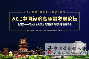 由中国商报社、中国商界杂志社牵头,中国信息界杂志社、中国管理科学研究院商业模式研究所、中国合作贸易企业协会电子商务分会、中国流通行业管理政研会信用管理专委会、江苏掌心企业管理咨询集团有限公司等媒体机构联合主办的“2020中国经济高质量发展论坛暨金典奖第九届公众满意典范品牌新闻发布领袖年会”活动定于2020年8月25日-26日在苏州举行。