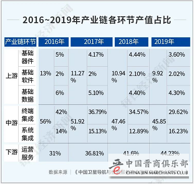纵览目前的北斗产业链企业,随着北斗三号的逐步建成,上游及中游的产值比例逐渐缩小,下游运营服务产值比例逐步提升。券商研报分析称,截至2018年,我国卫星导航与位置服务产业上游及中游产值占比约58.4%,相较于2015年时的75%已有明显下降,而下游产值的比例则显著提升,组网完成后,这一比例将持续增长,2023年有望超过60%。
